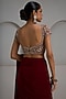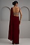 Featuring a maroon pre-stitched saree in georgette base. It is paired with a net embroidered blouse. Accentuate it with statement jewellery and heels for a festive occasion, wedding or engagement ceremony.