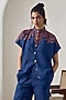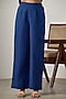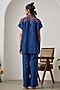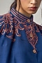 Featuring a navy blue shirt in jute linen base with short sleeves and orange embroidery. It is paired with pants. Accentuate it with dangler earrings and heels for evening soirees.