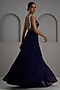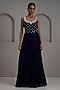 Navy Raw Silk & Georgette Embroidered Gathered Gown