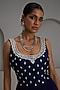 Featuring a navy gathered gown in raw silk and georgette base with hand and machine embroidery. Style with statement earrings and embellished heels for an engagement or sangeet ceremony.
