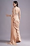 Featuring a nude ruched saree in crepe satin base. It is paired with an embroidered net blouse and a belt. Accentuate with statement earrings and heels for a festive occasion or sangeet ceremony.