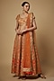 Featuring an orange kalidar anarkali in raw silk base with dori and hand embroidery. It is paired with stretch cotton churidar pants and a net dupatta. Accentuate it with statement jewellery and heels for your wedding or engagement ceremony.