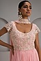 Featuring a paste pink gown in net and georgette base with embroidery. It is paired with a georgette choker dupatta. Accentuate it with statement jewellery and heels for festive occasions.