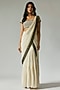 White & Black Georgette Cutdana Embroidered Draped Saree Set