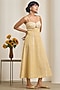 Featuring a yellow and white checkered maxi dress in cotton base with strappy sleeves and machine embroidery. Style it with hoop earrings and flats for casual outing, summer vacation or brunch wear.