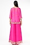 Featuring a hot pink kurta in organza silk base with mirror work embroidery. It is paired with matching pants and a dupatta.