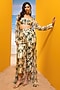 Featuring an ivory shirt jacket in georgette base with print and embellishments. It is paired with a silk bustier and straight pants. Style this set with chunky statement earrings, flats and a cane toe bag, perfect for for a vacation, cruise party or a brunch.