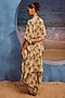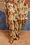 Featuring an ivory kaftan in georgette base with print and embellishments. It is paired with a slip and cowl pants. Style this set with chunky statement earrings, flats and a cane toe bag, perfect for for a vacation, cruise party or a brunch.