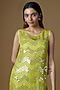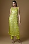 Featuring a lime green kurta in organza and chanderi silk base with tikki detail. It is paired with a matching bustier and pants.