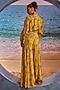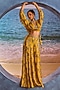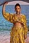 Featuring a mustard top in silk base with print and embellishments. It is paired with sharara pants. Style this set with chunky statement earrings, flats and a cane toe bag, perfect for for a vacation, cruise party or a brunch.