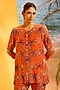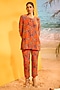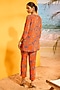 Featuring an orange top in crepe base with print and embellishments. It is paired with pants. Style this set with chunky statement earrings, flats and a cane toe bag, perfect for for a vacation, cruise party or a brunch.