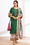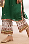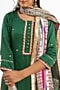 Featuring a green kurta in chanderi base with handblock print and zari work. It is paired with cotton printed pants and a chiffon dupatta. Perfect for a festive occasion.