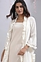 Featuring an ivory front-open jacket in cotton base with handmade gota frill lace. This contains only one piece.