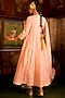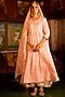 Featuring a pink kalidar kurta in cotton base with gota work. It is paired with matching farshi pants and a handspun mulmul scalloped dupatta.