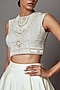 Featuring an ivory skirt in taffeta base. It is paired with a crop top having crystal pearl detail. Accentuate it with statement jewellery and heels for engagement ceremonies.