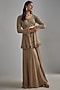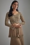 Featuring a beige peplum kurta in net base with seep, thread and cutdana embroidery. It is paired with matching georgette sharara pants and an embroidered belt.