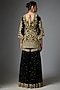 Featuring a black kurta in georgette base with thread, seep and dabka embroidery. It is paired with sharara pants and an organza dupatta. Accentuate it with a statement choker necklace, a matching potli bag and embroidered juttis for a stylish ensemble, ideal for weddings, sangeet celebrations or grand festive gatherings.