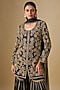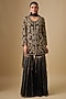 Featuring a black kurta in georgette base. It is paired with organza sharara pants and a net dupatta. Accentuate it with heels and statement jhumkas for grand festive occasions or sangeet ceremonies.