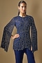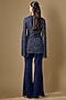 Featuring a blue jacket in georgette base with seep, beads and cutdana work. It is paired with pants. Accentuate it with dangler earrings, embellished heels for a festive occasion, cultural event, cocktail or sangeet ceremony.
