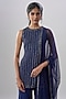 Featuring a blue kurta in georgette base with nalki and seep embroidery. It is paired with sharara pants and a net dupatta. Accentuate it with statement jhumkas and embellished juttis for a refined festive appeal, perfect for weddings or family celebrations.