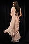 Featuring a blush pink saree in georgette base with beads and seep work. It is paired with a matching net unstitched blouse piece and an embroidered belt.