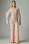 Featuring a pink jacket in georgette base with embroidery. It is paired with pants. Style it with zircon earrings and block heels, perfect for sangeet ceremony or cozy family get-togethers.