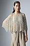 Featuring a grey cape in net base with cutdana work. It is paired with an inner and silk satin sharara. Accentuate it with zircon jewellery and embellished heels for a sangeet or wedding ceremony.