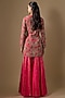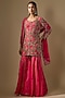 Featuring a hot pink jacket in georgette base with seep, dabka and cutdana work. It is paired with organza sharara pants and a net dupatta. Accentuate it with dangler earrings, embellished heels and a potli bag for a traditional look, perfect wear for a festive occasion, cultural event, wedding or sangeet ceremony.