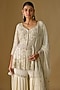 Featuring an ivory peplum kurta in georgette base with pearl, seep and cutdana work. It is paired with sharara pants and a net dupatta. Accentuate it with statement jewellery and heels for an elegant look, perfect for festive, sangeet or pooja ceremony.