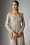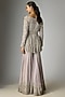 Featuring a lilac peplum in georgette base with pearl, cutdana and seep work. It is paired with sharara, a belt and a net dupatta. Accentuate it with statement jewellery, an embellished clutch and block heels for a weddings, grand festive occasion or sangeet ceremony.