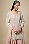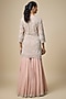 Featuring a pink kurta in georgette base with pearl and cutdana embroidery. It is paired with sharara pants and a net dupatta. Accentuate it with zircon dangler earrings, a clutch, and nude heels for festive gatherings, sangeet or an engagement ceremony.