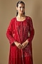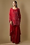 Featuring a red jacket in georgette base with seep, beads and cutdana work. It is paired with sharara pants and a net dupatta. Accentuate it with dangler earrings, embellished heels for a festive occasion, cultural event, wedding or sangeet ceremony.