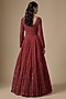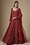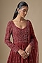 Featuring a red anarkali in georgette base with embroidery. It is paired with silk satin pants and an organza dupatta. Accentuate it with zircon jewellery and heels for a wedding, sangeet or engagement ceremony.