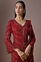 Featuring a red jacket in georgette base with cutdana and pearl work. It is paired with organza sharara and a net dupatta. Accentuate it with zircon jewellery and block heels for weddings or sangeet ceremonies.