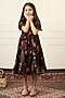 Featuring a black dress for girls in handwoven chanderi base with print. Accessorize it with matching hair accessories and sandals for a stylish ensemble, ideal for any festive occasion or birthday party.