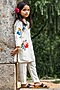 Featuring an ivory kurta for girls in handwoven chanderi base with floral print. It is paired with cotton pyjama pants and a net dupatta. Accessorize with sandals and a cute hair accessory for a pooja ceremony or festive occasion.