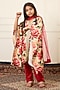 Featuring a maroon kaftan for girls in handwoven chanderi base with print and gota detailing. It is paired with cotton straight-cut pants and a dupatta. Style it with cute hair accessories and sandals for a festive occasion or wedding ceremony.