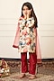 Featuring a multi-colored kurta for girls in handwoven chanderi base with side slit, print and gota lace detailing. It is paired with straight pants and a dupatta. Style it with cute hair accessories and sandals for a festive occasion or wedding ceremony.