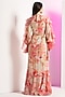 Featuring a coral asymmetrical dress in brasso and organza base with frills detail. Enhance the charm of this dress by pairing it with stiletto heels and hoop earrings, creating a perfect ensemble for a brunch or an evening party.