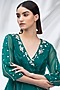 Featuring an emerald green overlapped tunic in organza base with embroidery. It is paired with matching satin georgette tulip dhoti pants.