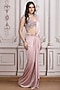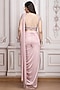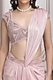 Featuring a blush pink pre-draped saree in shimmer lycra base. It is paired with an embellished blouse and a belt. Accentuate it with zircon or pearl jewellery, an embellished clutch and heels for a cocktail, sangeet or engagement ceremony.