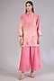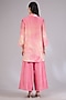 Featuring a champagne gold kurta in chanderi base with print and embroidery. It is paired with wide-leg palazzo pants. Accentuate it with stud earrings and flats for casual outings or family gatherings.