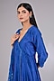 Featuring an indigo anarkali in chanderi base. It is paired with textured palazzo pants and a printed dupatta. Accentuate it with dangler earrings and block heels for a festive occasion or pooja ceremony.