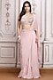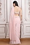 Featuring a pastel pink pre-draped saree in metallic georgette base. It is paired with a blouse having floral motif hand embroidery and a belt. Accentuate it with zircon or pearl jewellery, an embellished clutch and heels for a cocktail, sangeet or engagement ceremony.