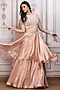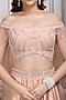 Featuring a peach layered lehenga in lurex georgette base. It is paired with an embellished off-shoulder blouse and a dupatta. Accentuate it with zircon or pearl jewellery, an embellished clutch and heels for a wedding, sangeet or engagement ceremony.