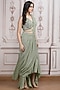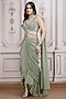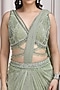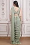 Featuring a sage green pre-draped saree in shimmer lycra base. It is paired with a cut-out blouse having cold-shoulder and sequins embroidery, including a belt. Accentuate it with zircon or pearl jewellery, an embellished clutch and heels for a cocktail, mehendi, sangeet or engagement ceremony.