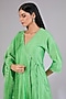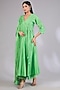Featuring a sage shimmer anarkali in chanderi base. It is paired with textured palazzo pants and a printed dupatta. Accentuate it with dangler earrings and block heels for a festive occasion or pooja ceremony.
