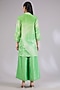 Featuring a sage shimmer kurta in chanderi base with print and embroidery. It is paired with wide-leg palazzo pants. Accentuate it with stud earrings and flats for casual outings or family gatherings.