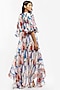 Featuring an ivory and blue bikini in lycra base with abstract print. It is paired with a matching chiffon printed flared cape.