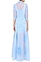 Featuring an ivory short fitted dress in cotton georgette shift base with resham and bead work. It comes along with icy blue organza long shirt jacket.